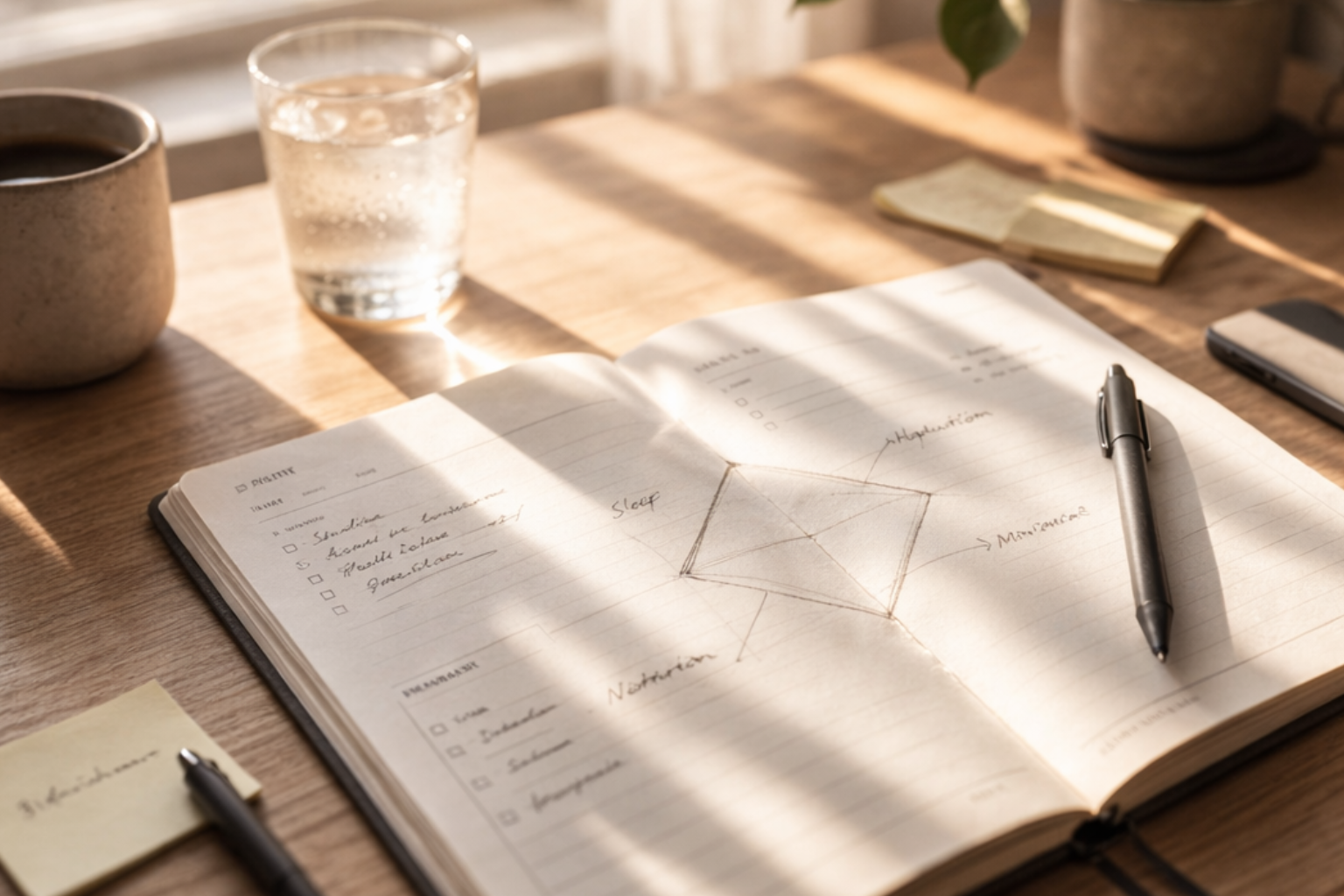 "On the days I worked on all four: sleep, nutrition, hydration and movement, I felt more focused, and my mood was steadier and more positive. That's when I realized how much the full set of routines works together."